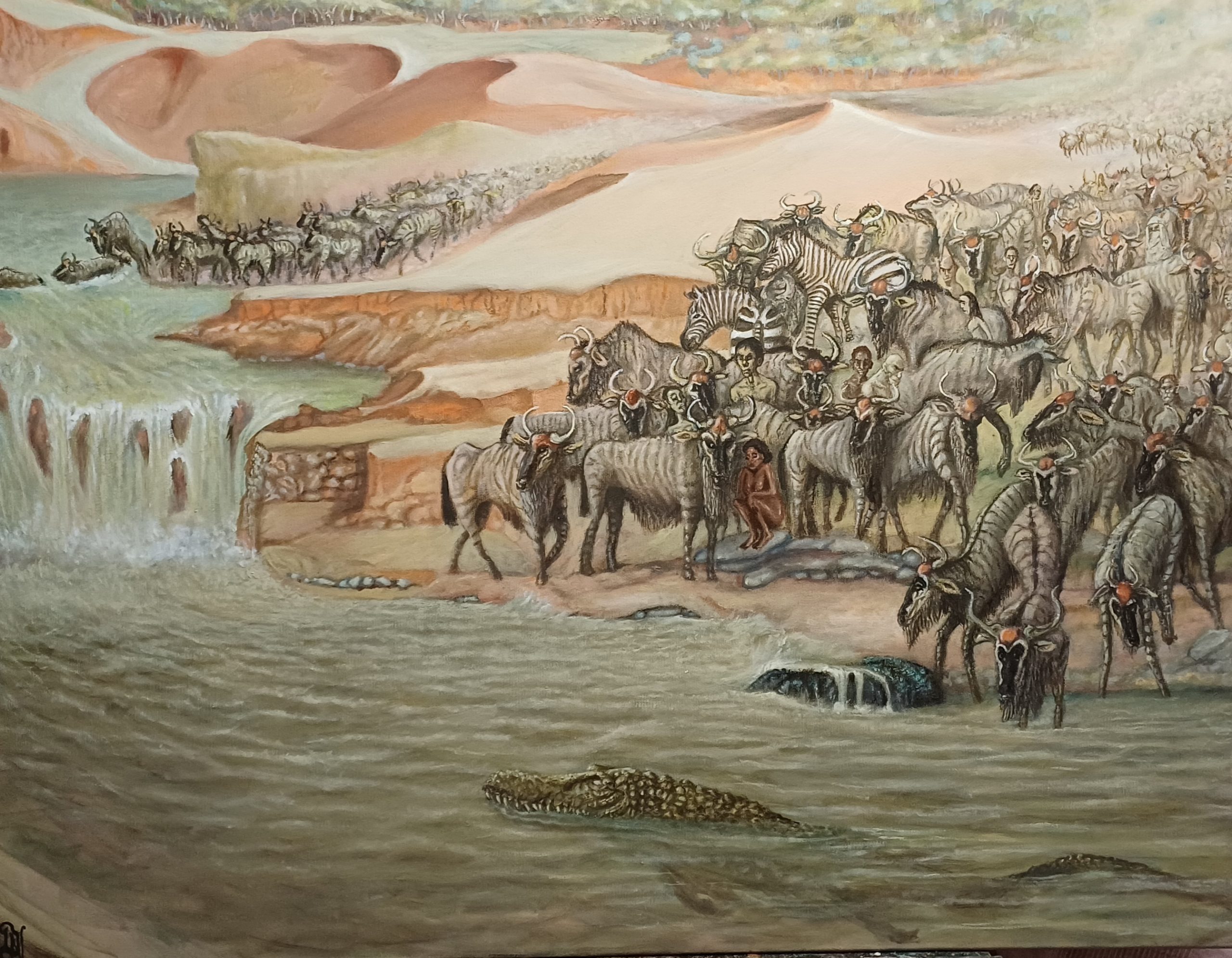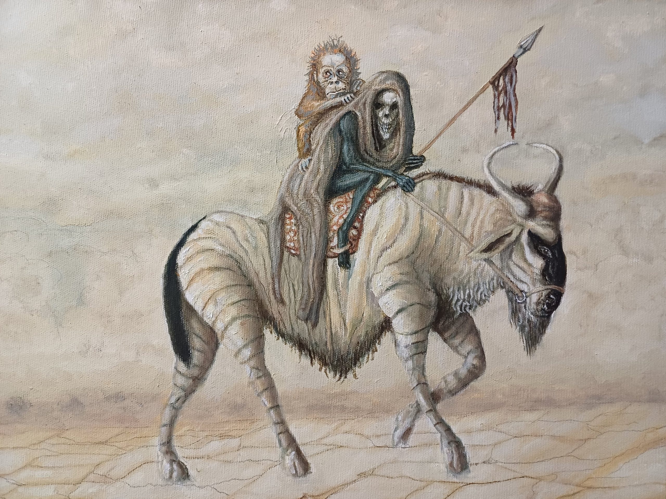 When the sun get’S killed by the craetures of the night, the for sure it is Sunset (counterpart painting to art work Sunrise). 120cm*90cm, for sale